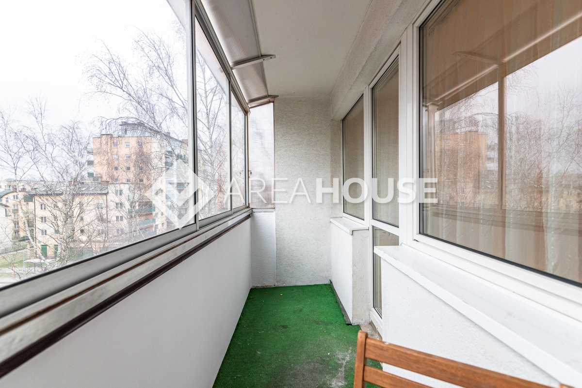 Mieszkanie składa się z trzech ustawnych pokoi, oddzielnej kuchni, łazienki i osobnej toalety.