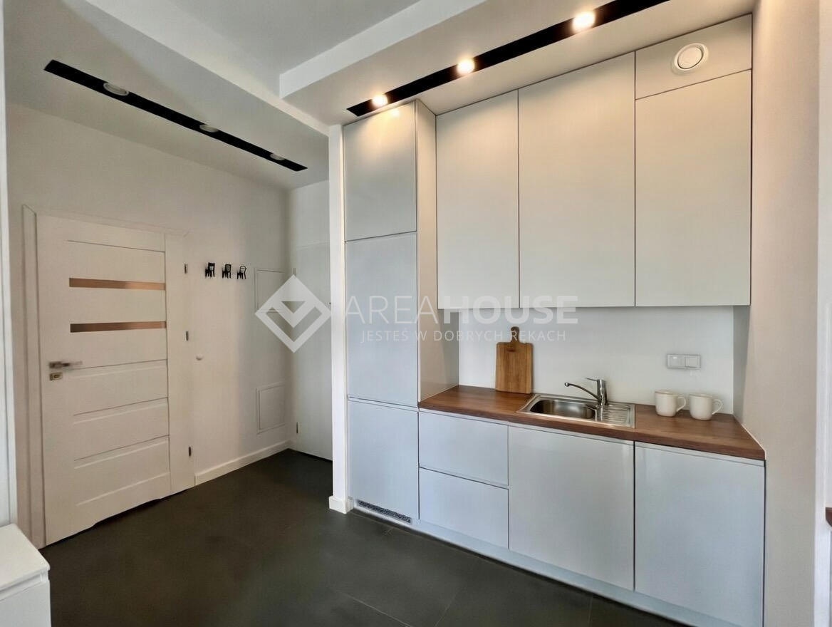Nieruchomość: Powierzchnia nieruchomości wynosi 32,5 m², mieszkanie usytuowane jest na 8 piętrze w 8 piętrowym budynku z dwiema windami. Mieszkanie posiada pokój z aneksem kuchennym, łazienkę z WC i przedpokój. Dzięki funkcjonalnemu układowi pomieszczeń przestrzeń jest dobrze wykorzystana i komfortowa zarówno dla singla, jak i pary. Nieruchomość posiada balkon, który stanowi idealne miejsce do wypoczynku, oraz miejsce parkingowe w tym samym budynku znajdujące się w garażu podziemnym. Teren wokół osiedla jest zadbany – zielone patio pomiędzy blokami, dróżki spacerowe, ławki oraz oczko wodne sprzyjają relaksowi i codziennemu odpoczynkowi. Dodatkowym atutem jest spokojna atmosfera oraz estetyczna zabudowa osiedla.
