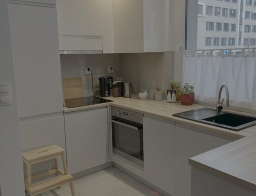 W skład mieszkania wchodzi salon z aneksem kuchennym, sypialnia na antresoli oraz łazienka. W salonie znajduje się rozkładana sofa dla dwóch osób.