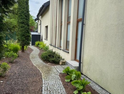 Nowoczesna architektura: Osiedle składa się z 8 domów w zabudowie bliźniaczej i 1 wolnostojącego, o nowoczesnym designie.