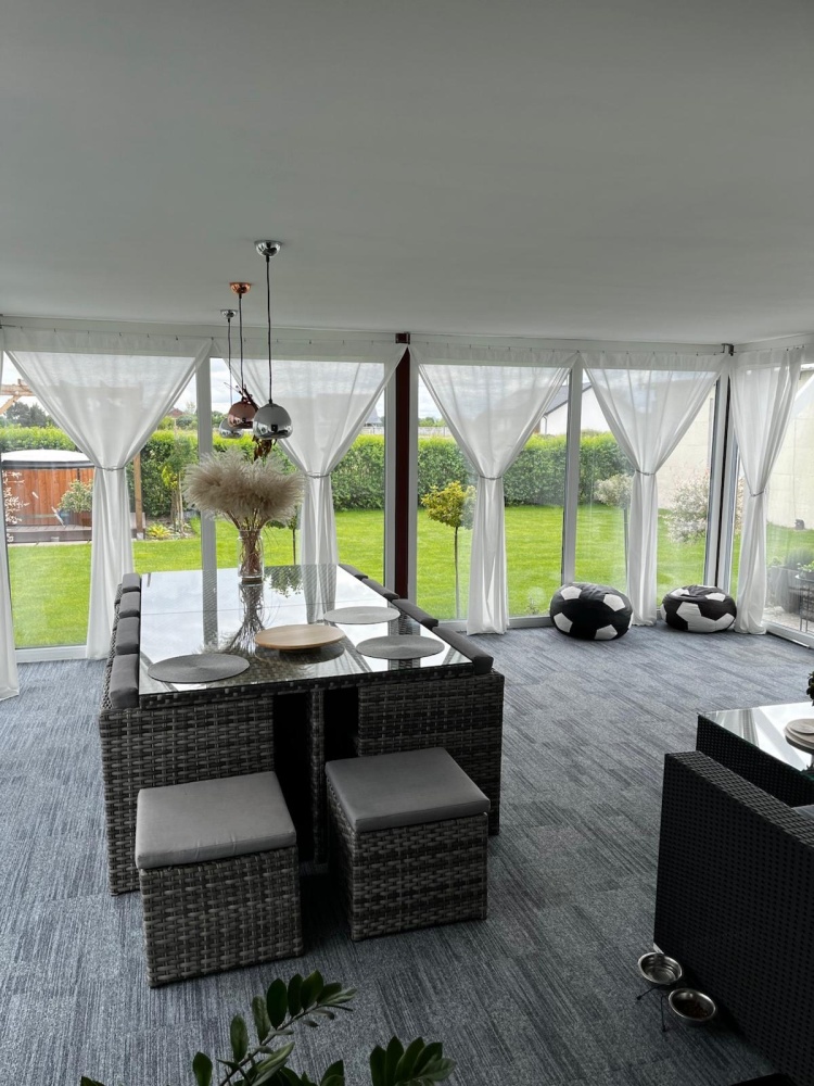Jednym z największych atutów tej nieruchomości jest przepiękny ogród zimowy. Jest to idealne, całoroczne pomieszczenie rekreacyjne, które może służyć jako:
