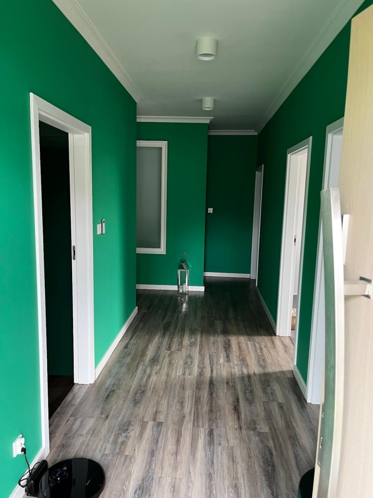 • Łazienka: Centralnie zlokalizowana, jedna duża, rodzinna łazienka. Wyposażona jest w nowoczesną armaturę, wannę (idealną na długie kąpiele) oraz prysznic.