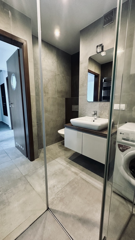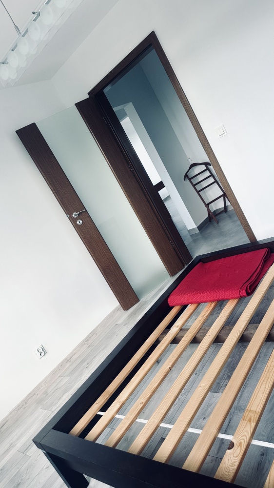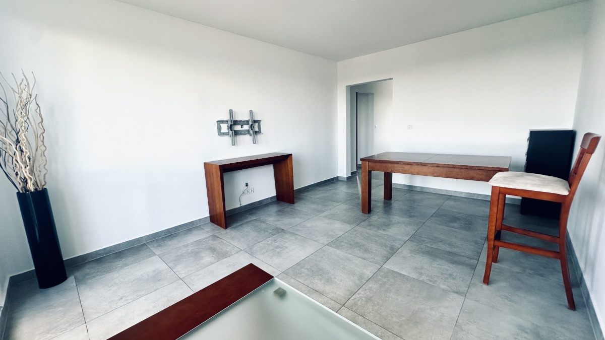 Prezentowane zdjęcia pokazują lokal z wyposażeniem, aktualnie trwa jego częściowe usuwanie (natomiast meble kuchenne i łazienkowe, duża biała szafa z drzwiami przesuwnymi, rama łóżka w okleinie naturalnej wenge, wieszak TV – kable w tunelu podtynkowym, duży stół i stoliczek kawowy do usunięcia na życzenie Kupujących)