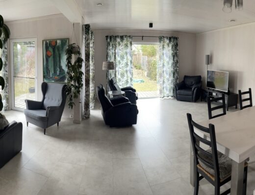 Przestronny salon pozwoli wypocząć całej rodzinie, bezpośrednie wyjście do ogrodu. Bardzo dobra akustyka.