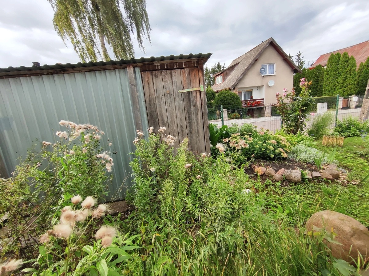 • I uwaga: na ogródku stoi praktyczny schowek – świetne miejsce na rower, narzędzia, konewkę albo wszystko, co nie mieści się w szafie