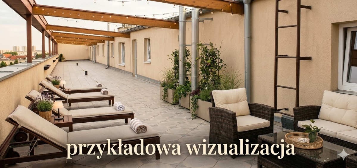 Istnieje możliwość zrobienia tarasu o powierzchni około 50 m2 (wstępna zgoda spółdzielni ).