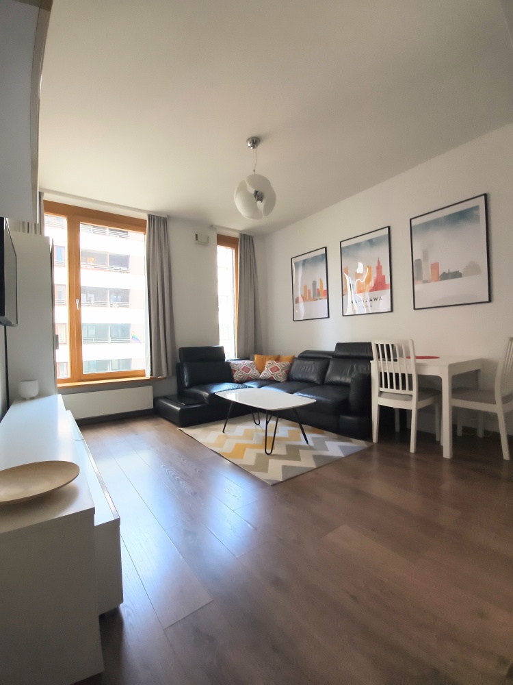 I will directly rent out a stylish, two-room apartment with an area of 47 sqm, located in the heart of Warsaw’s Muranów district, in the prestigious Apartamenty Trio high-rise building (ul. Stawki 2A). This is an ideal place for people who value high standards, security, and proximity to city attractions. The apartment includes a parking space in the underground garage (additional charge applies).