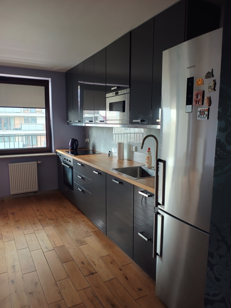 Wynajmę mieszkanie dwupokojowe 56 metrów ( salon z aneksem kuchennym z pełnym wyposażeniem) w nowoczesnym bloku na zamkniętym i monitorowanym osiedlu z ochroną fizyczną obok Promenady. Łazienka z prysznicem i z pralką, w korytarzu jest szafa w zabudowie. Duzy Bblkon z widokiem na zielone patio. Koszt wynajmu 3990zł plus opłaty miesięcznie ( czynsz, energia)