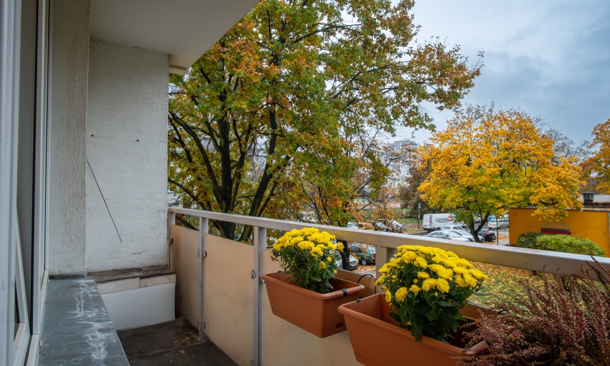 – balkon z widokiem na zieleń