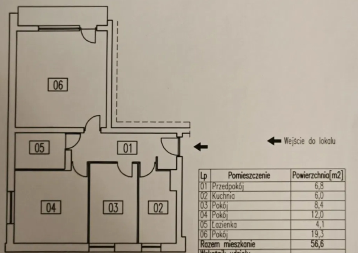 – powierzchnia: 56,6 m²