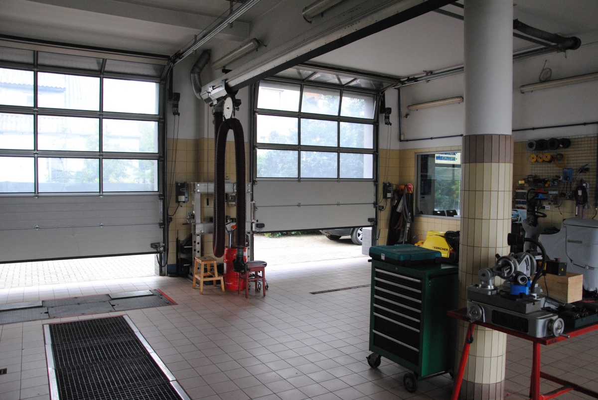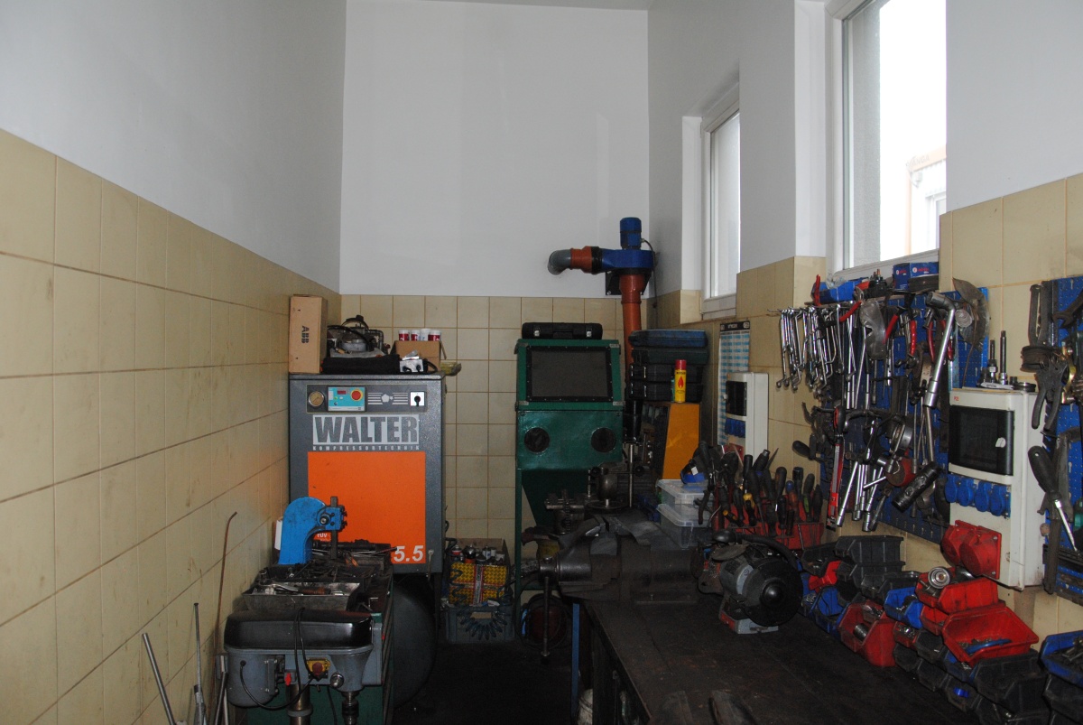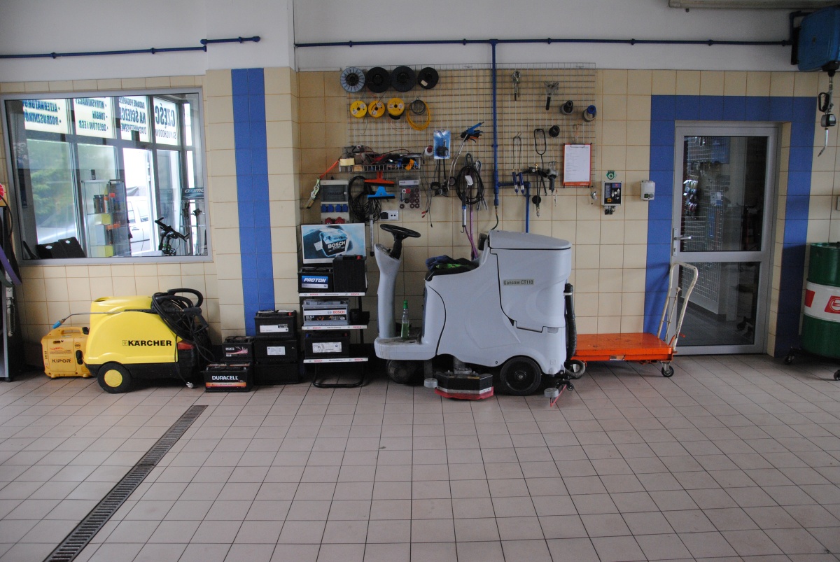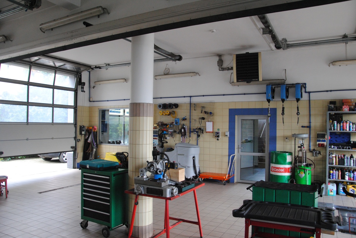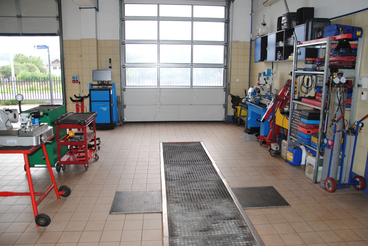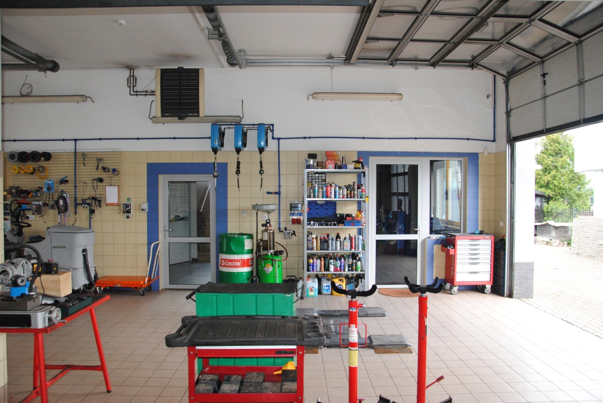 Działka ogrodzona, cały plac wyłożony kostką brukową dostosowaną do ciężkich pojazdów. Część warsztatowa ma 4 bramy wjazdowe o wys. 3,7 m firmy Hormann. Wysokość hali warsztatowej 3,92 m, pomieszczeń biurowych i sklepu z poczekalnią 3,34 m wysokości.