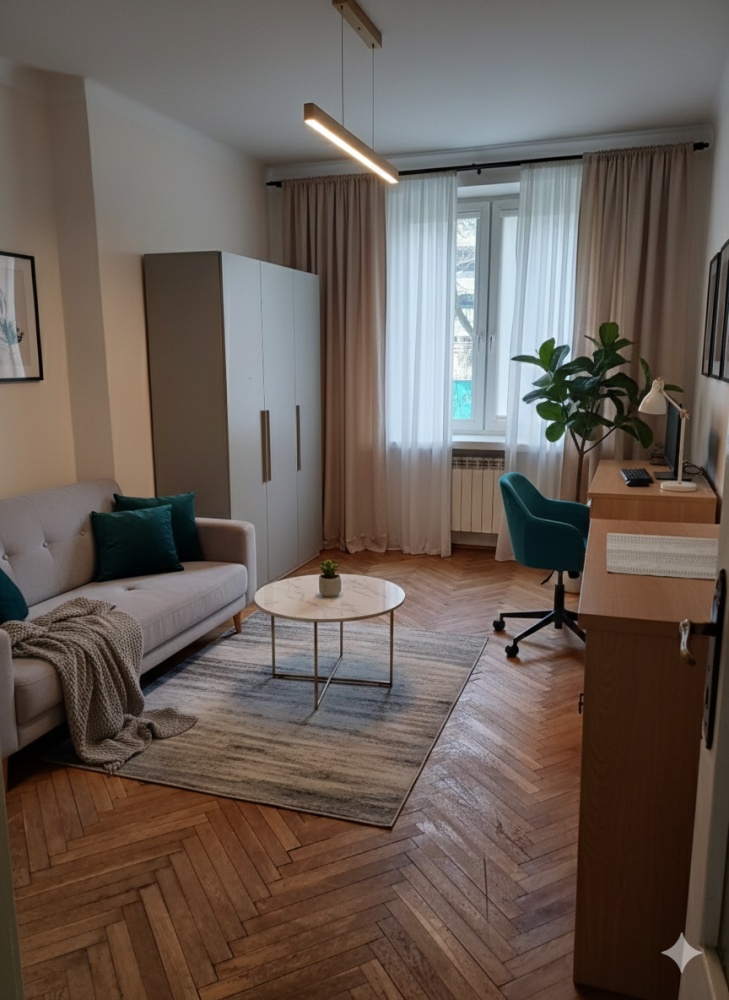 – Stan: Do własnej aranżacji/generalnego remontu. To zaleta – nie płacisz za czyjś gust. Otrzymujesz "czyste płótno" przygotowane pod Twoją wizję.