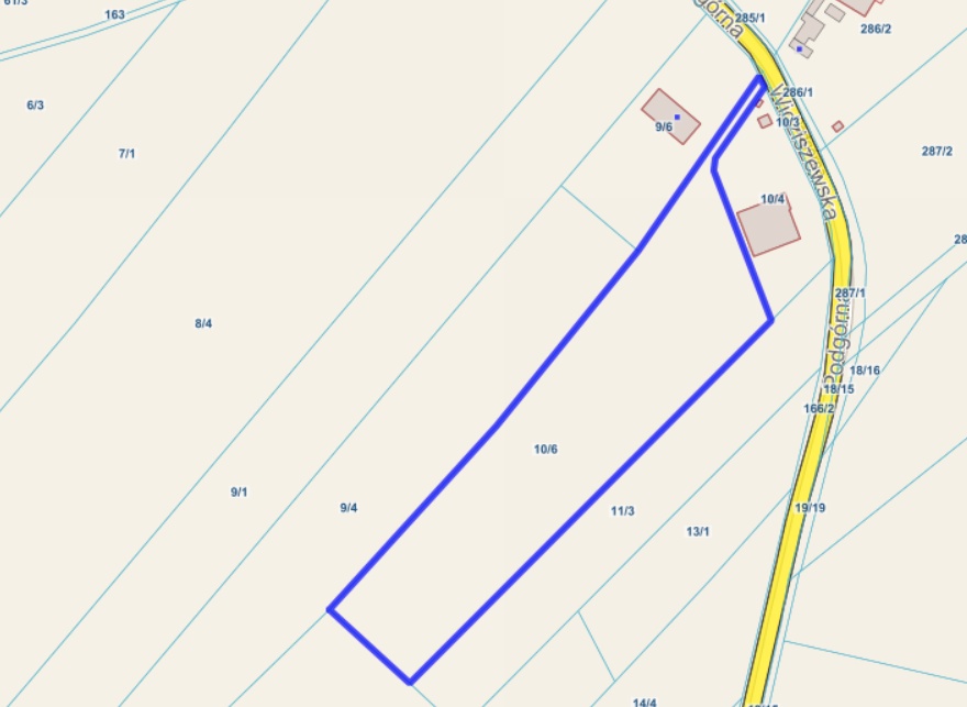 Działka nr 10/6 o powierzchni 22 957 m2 w kształcie wielokąta z rękawem dojazdowym od strony drogi utwardzonej asfaltem (ulicy Widziszewskiej), niezabudowana i obecnie użytkowana rolniczo. Teren, na którym znajduje się przedmiotowa nieruchomość ma ukształtowanie płaskie z nieznacznym pochyleniem w kierunku północno-wschodnim. Nad częścią działki przechodzi linia energetyczna. Nieruchomość ma bezpośredni dostęp do drogi publicznej utwardzonej asfaltem.