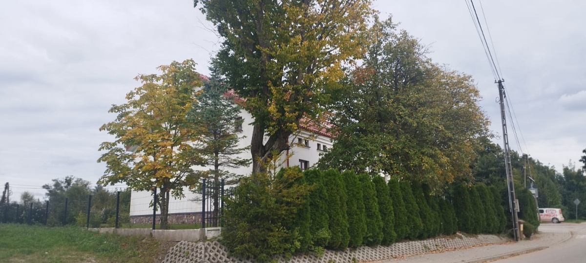 Działka ogrodzona (front: metaloplastyka, reszta: siatka), liczne nasadzenia