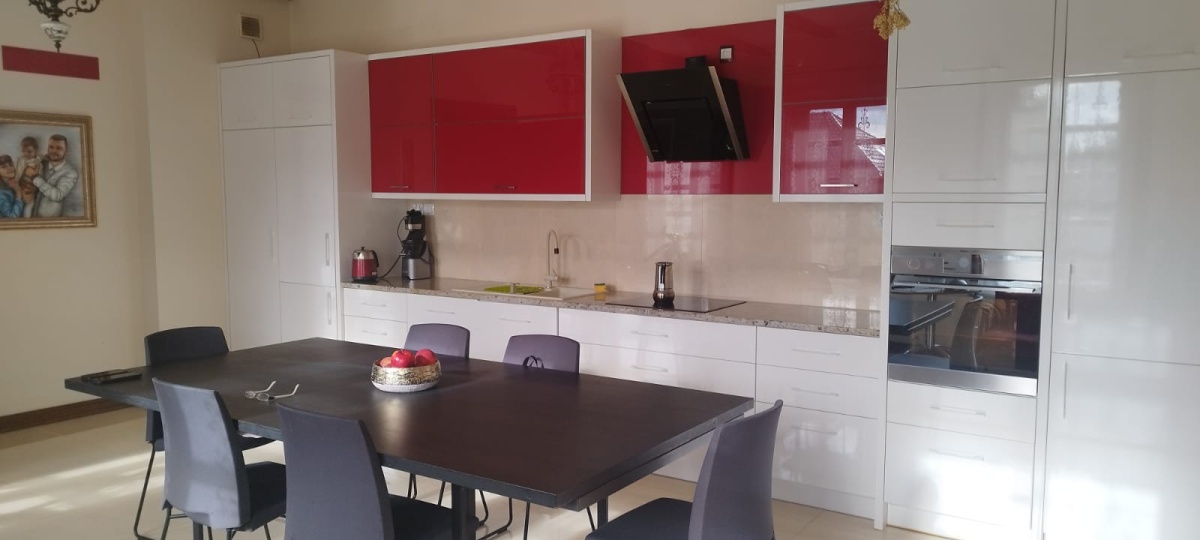 Kuchnia w zabudowie (sprzęty AGD: płyta, piekarnik, lodówka, zmywarka)