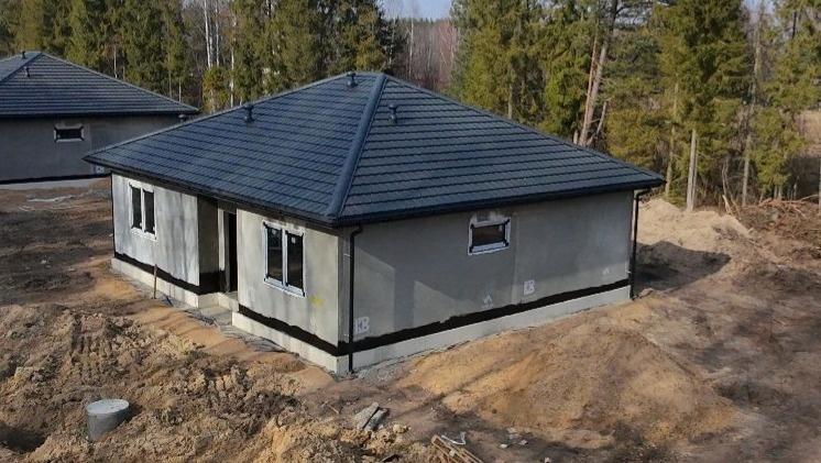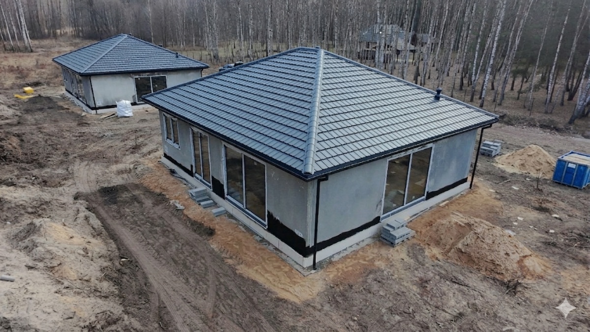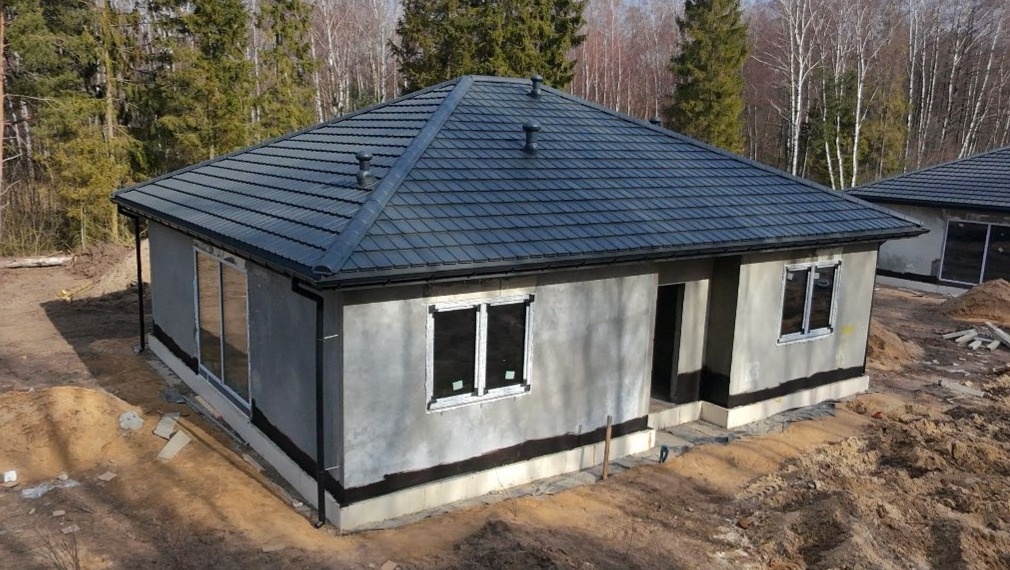 Budynek wykonany świetnym standardzie energetycznym w technologii betonowo‑keramzytowej na płycie fundamentowej