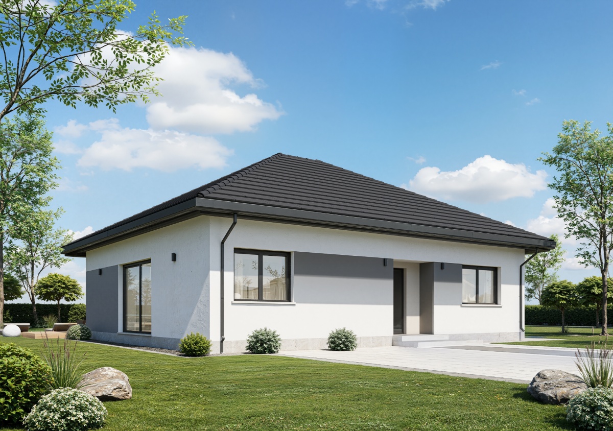 Nowoczesny parterowy dom 108,64 m² w stanie deweloperskim, na działce ponad 1000 m², w Bartoszówce przy ul. Pałacowej.