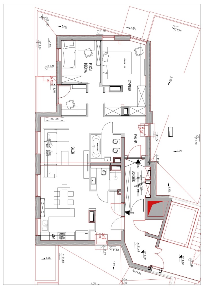 Mieszkanie mieści się na ostatniej kondygnacji pięciopiętrowego bloku.