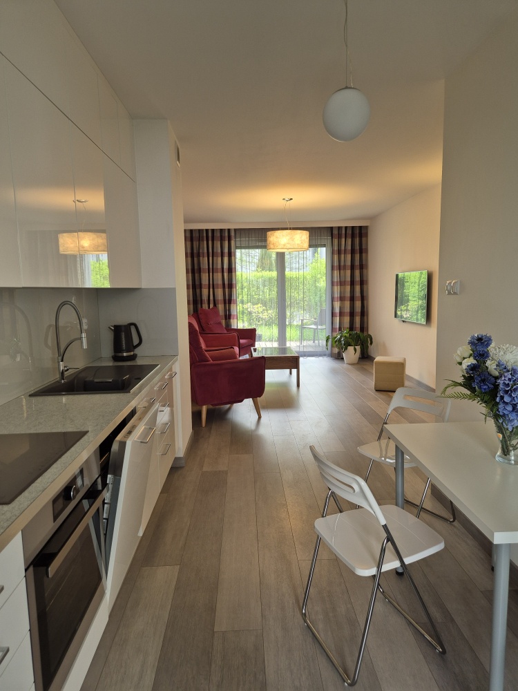 Apartament znajduje się w otoczeniu dużej ilości zieleni bezpośrednio przy parku.