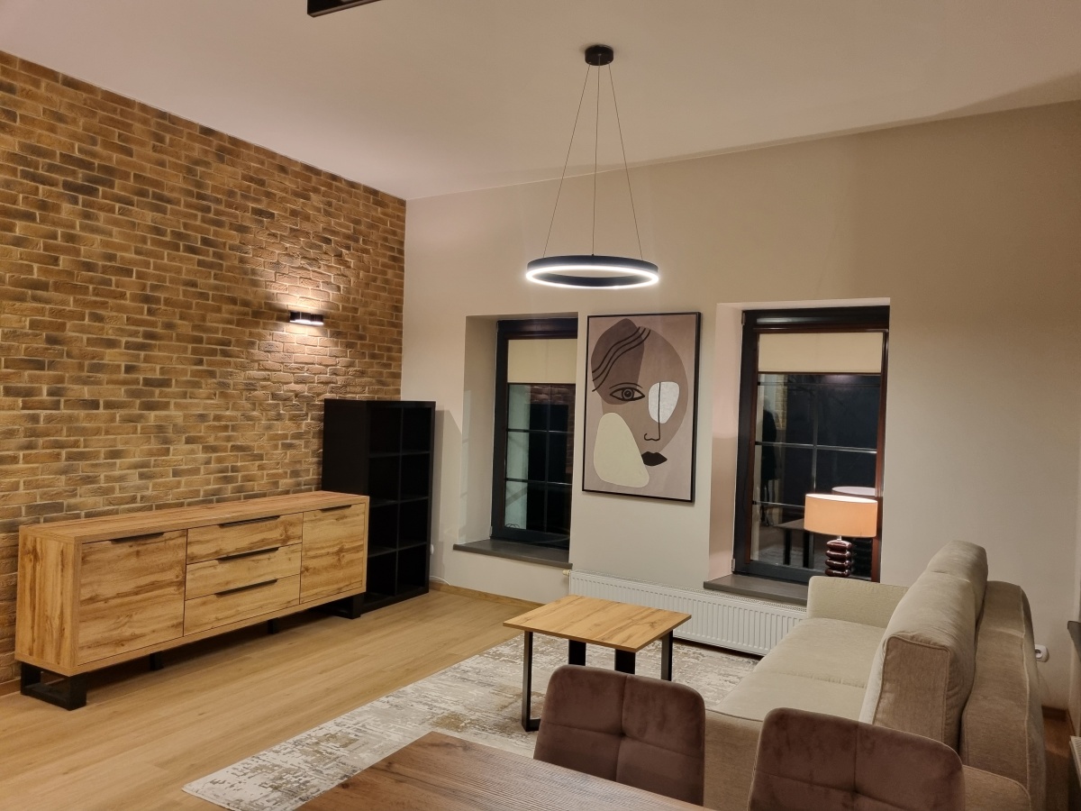 Wyposażona kawalerka 38,60 m2 (wys. 3,15m) w loftach, Zielona Góra, ul. Fabryczna 17d, 1 piętro. Pokój z aneksem kuchennym, przedpokój, łazienka.