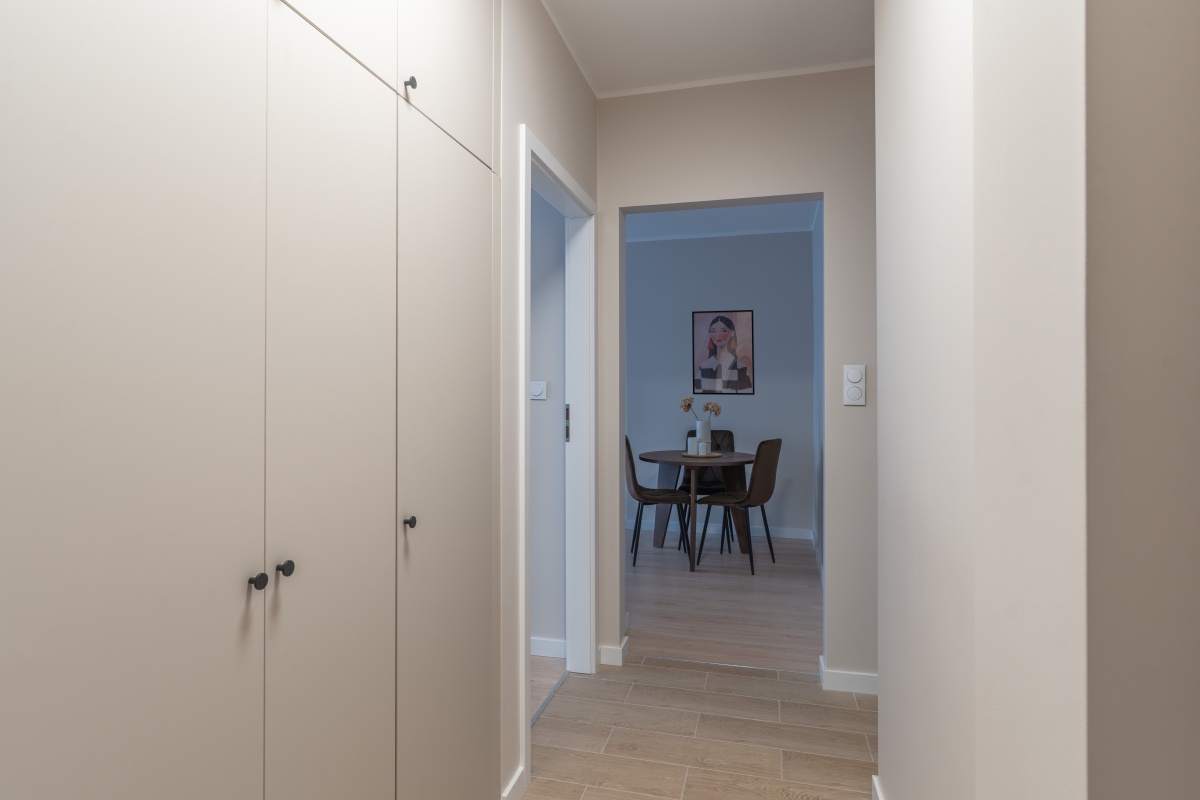 Mieszkanie po generalnym remoncie – nowe instalacje, podłogi, drzwi oraz zabudowy meblowe